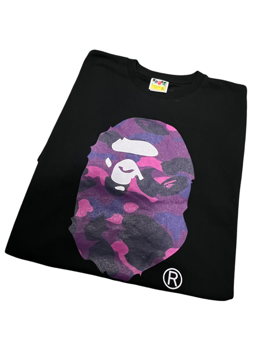 BAPE Purple Camo Ape Black T-Shirt Size XL