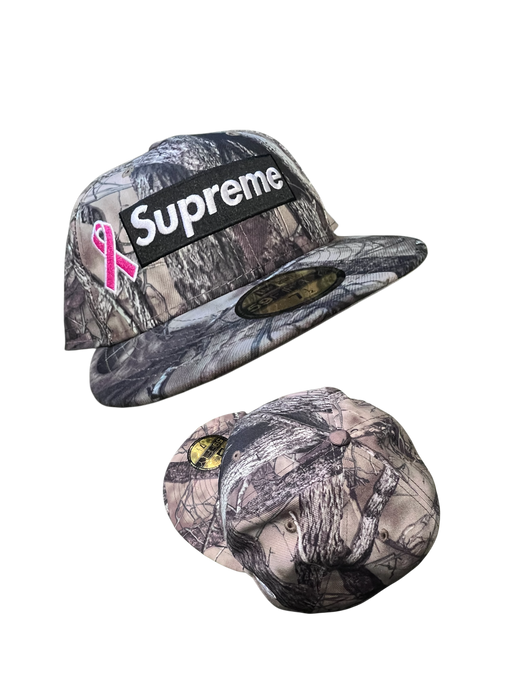 Supreme x New Era “Pink Ribbon Camo Box Logo” Fitted Hat 7 1/2