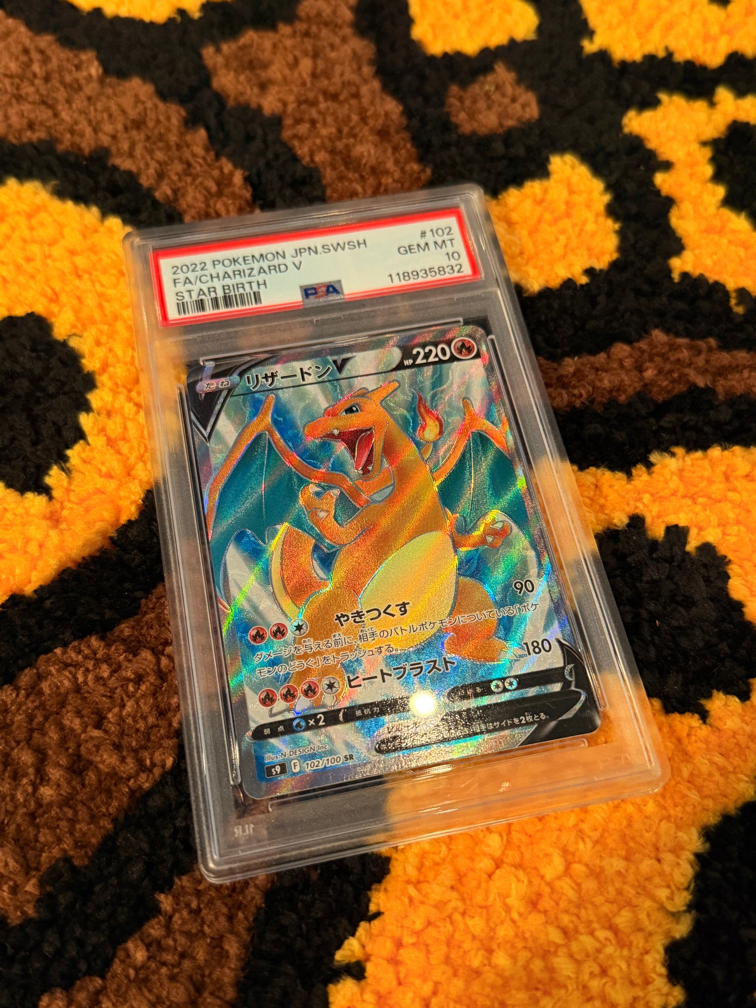 - Details: Japanese FA Charizard V from Star Birth (s9), card #102/100; authenticated and graded PSA 10 GEM MINT; case crystal-clear with no cracks or clouding