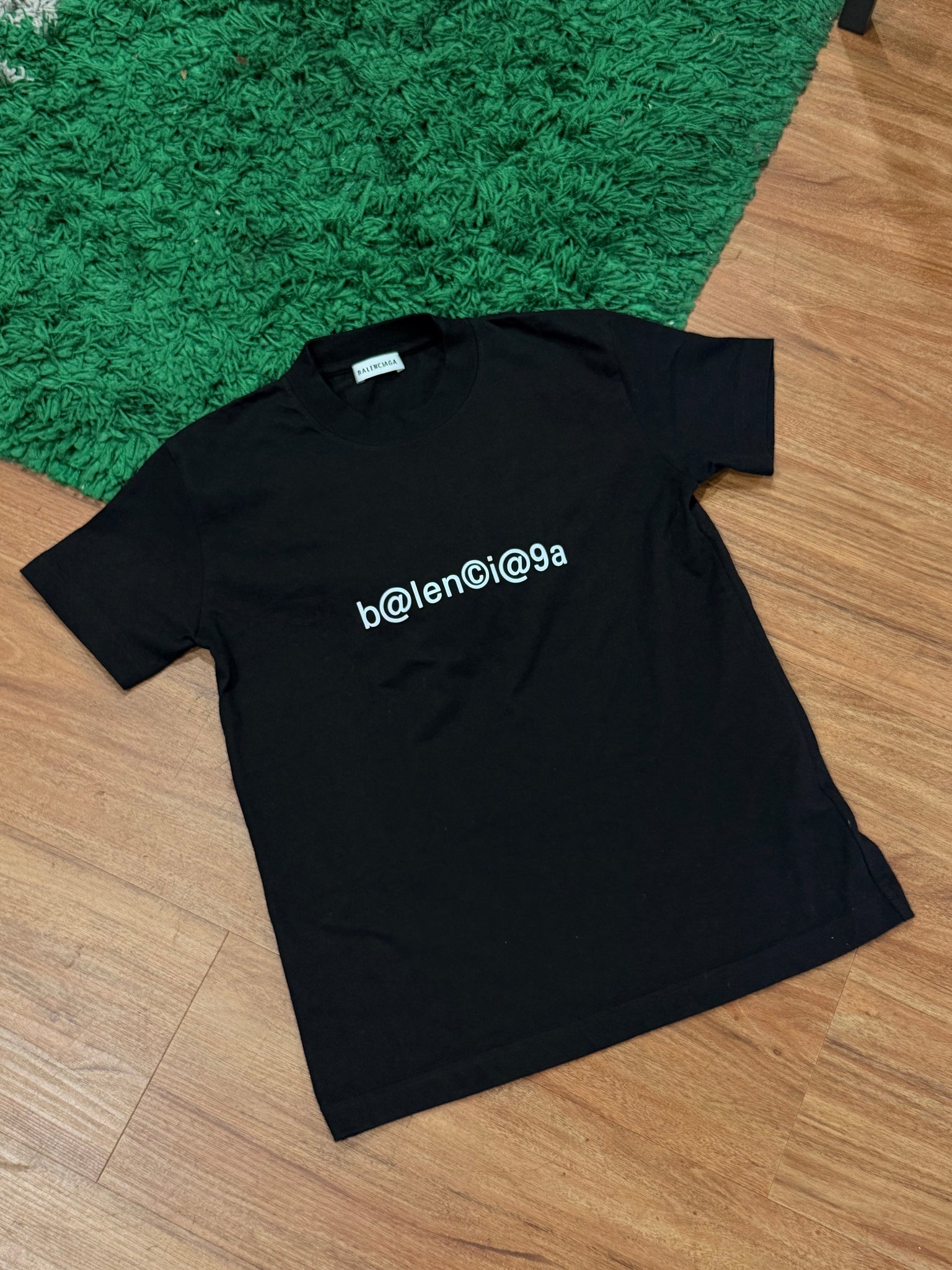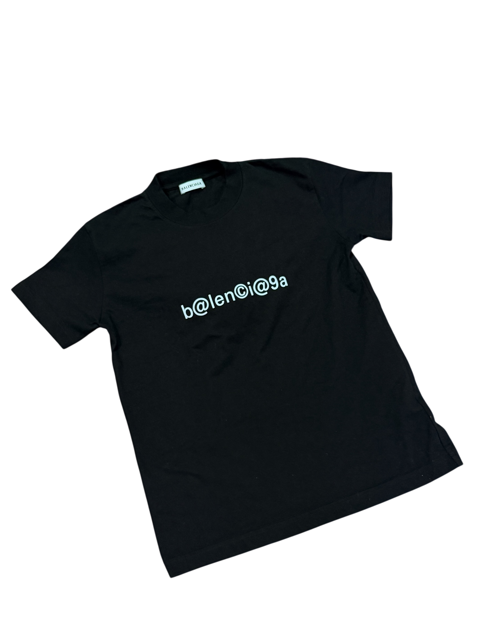 - Details: Minimalist Balenciaga tee featuring the signature b@lenci@ga digital-style chest print. Clean black colorway with a subtle statement logo, easy to wear and highly recognizable. Soft cotton construction with a structured luxury fit.
