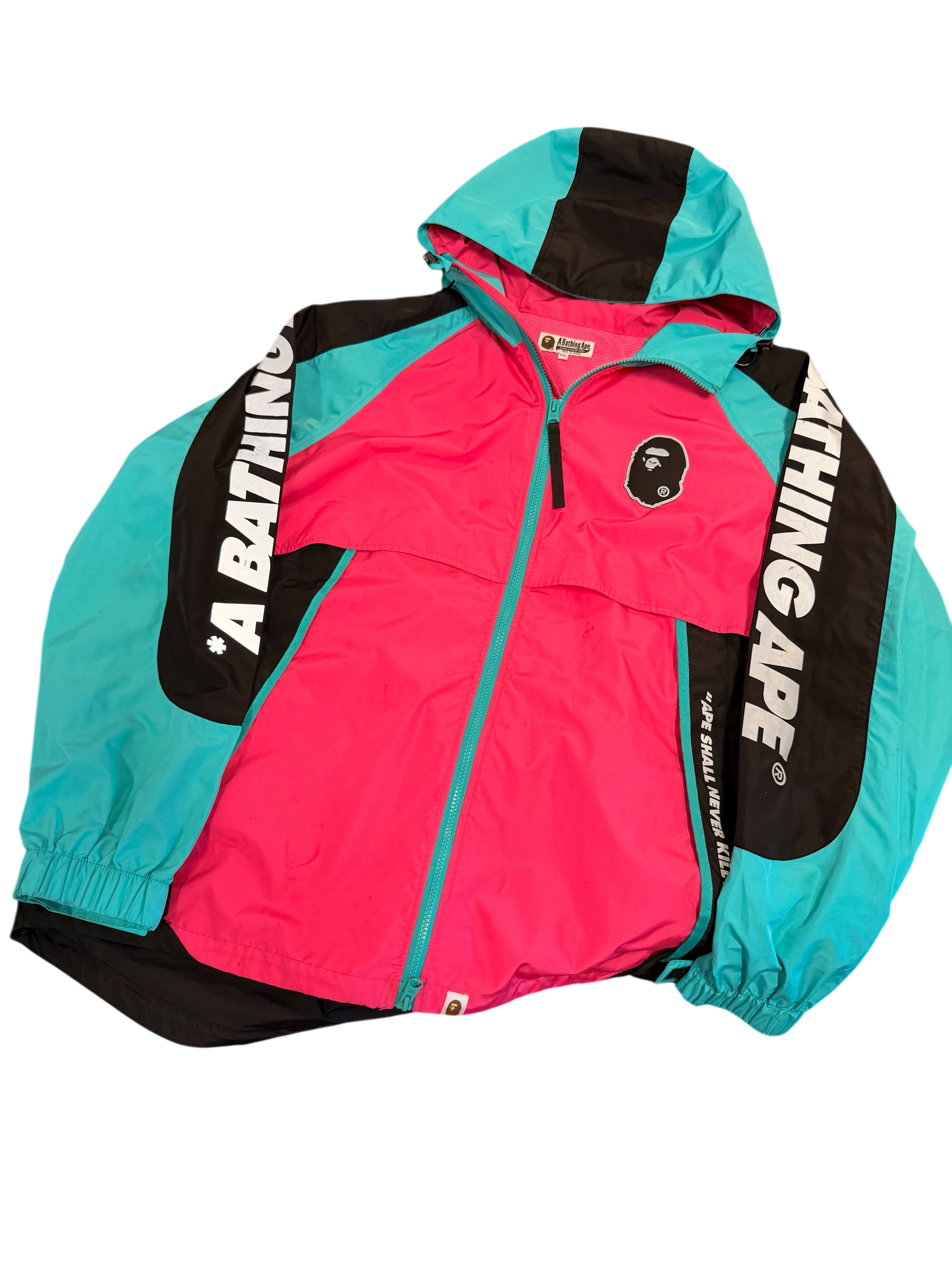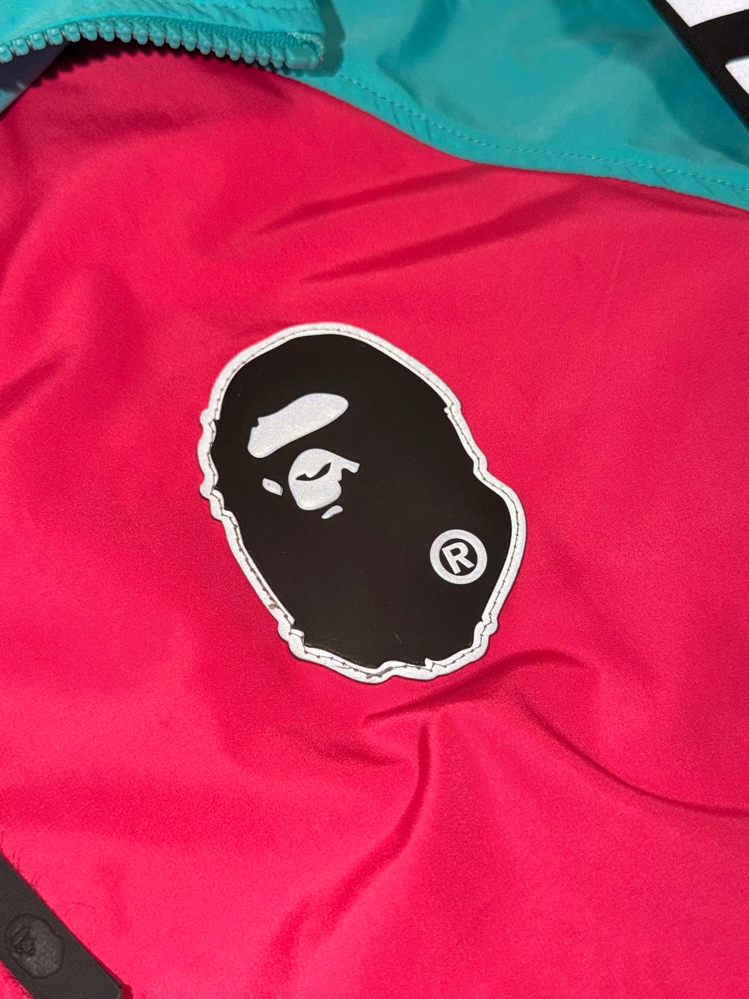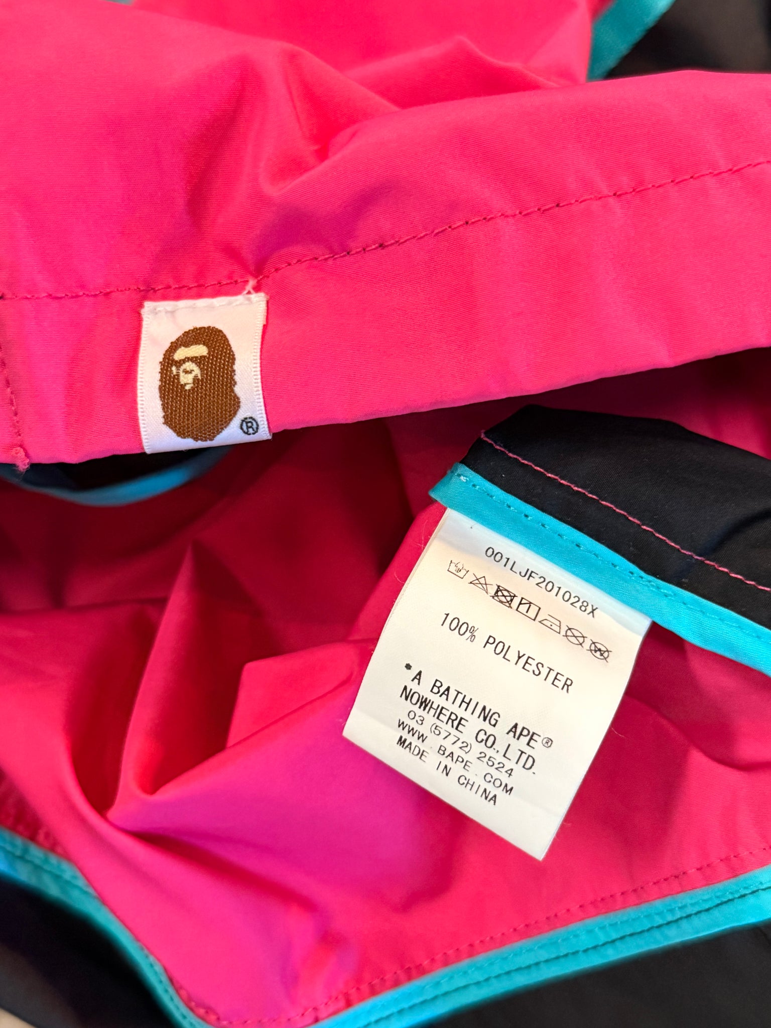 - Details: Super rare BAPE windbreaker that packs into itself and converts into a crossbody bag. Features bold BAPE camo, large front logo, and 3M reflective branding throughout. Lightweight, functional, and designed for both wear and carry.