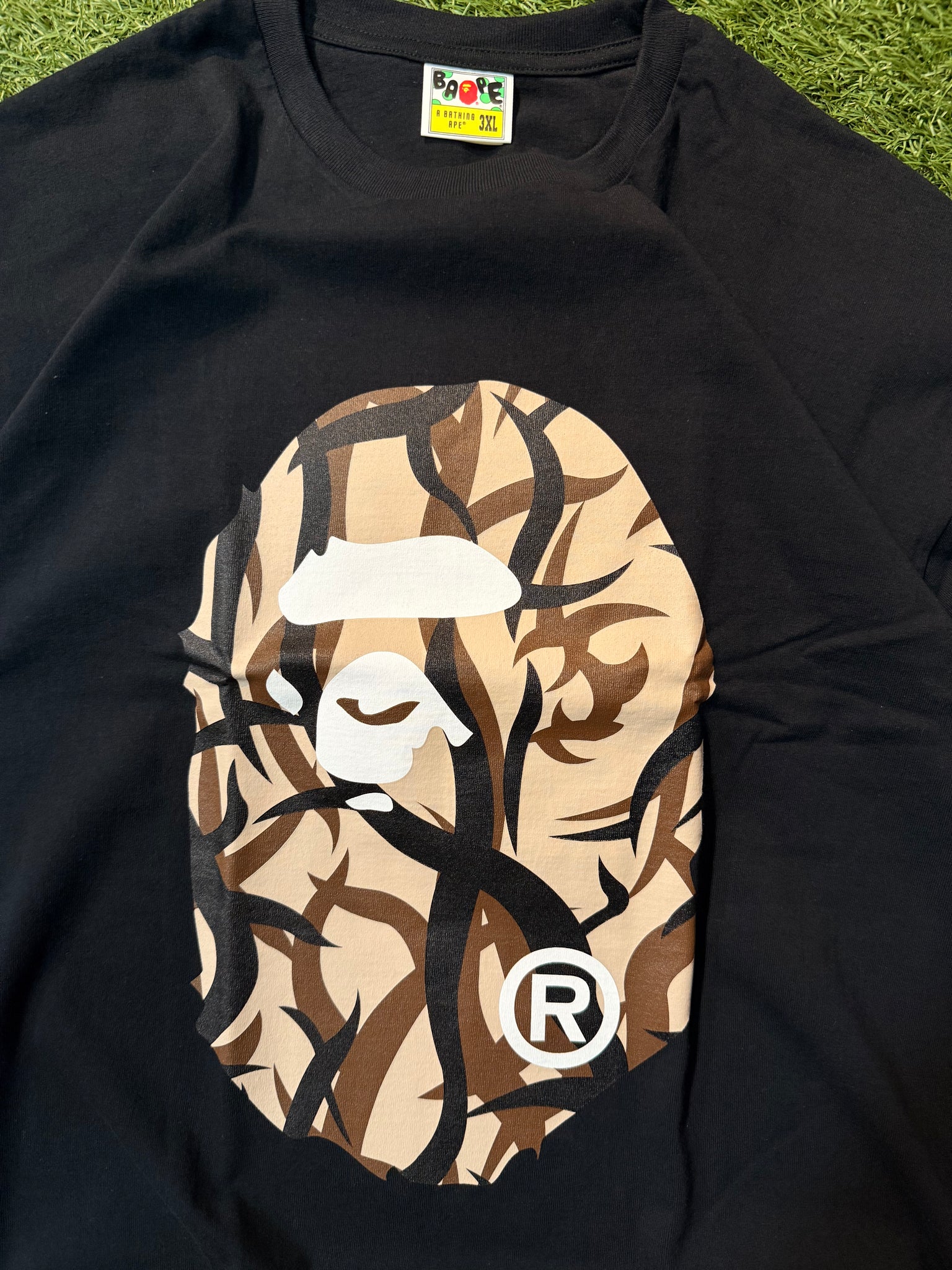 - Colorway/Design: Black tee with classic Brown ABC Camo Ape Head logo print