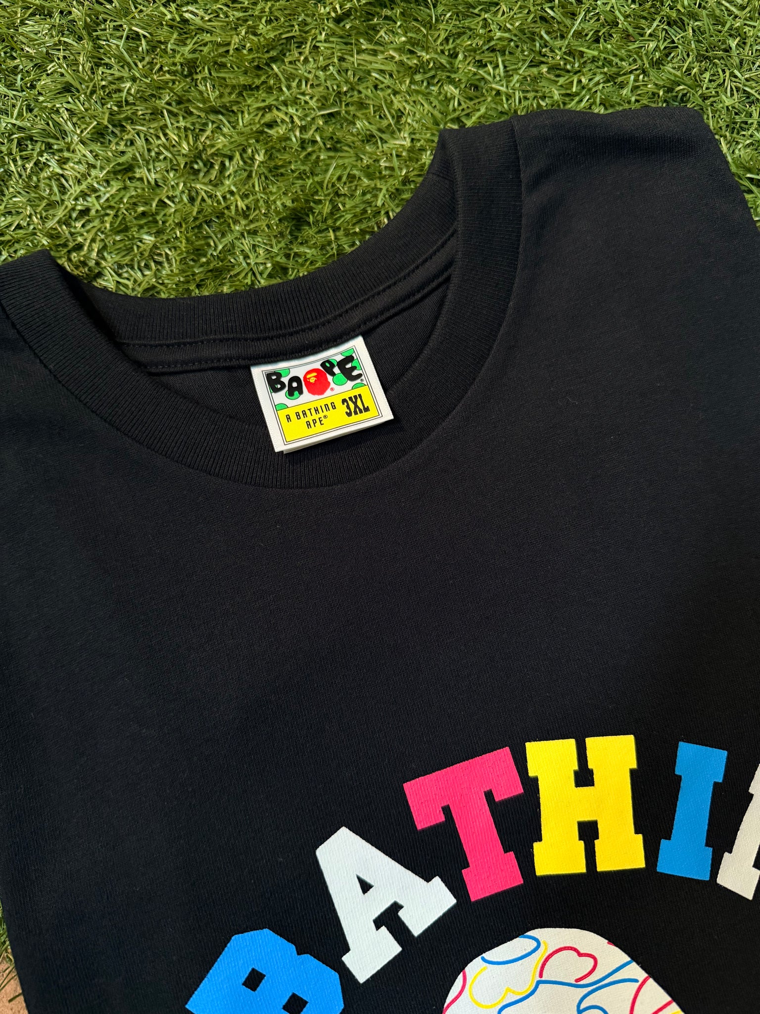 - Details: Vibrant multicolor take on BAPE’s classic College Logo tee. Features pastel line-art Ape Head graphic and heavyweight cotton build with woven sleeve tag. A bold staple from the 2024 core lineup, easy to pair and recognized instantly by collectors.
