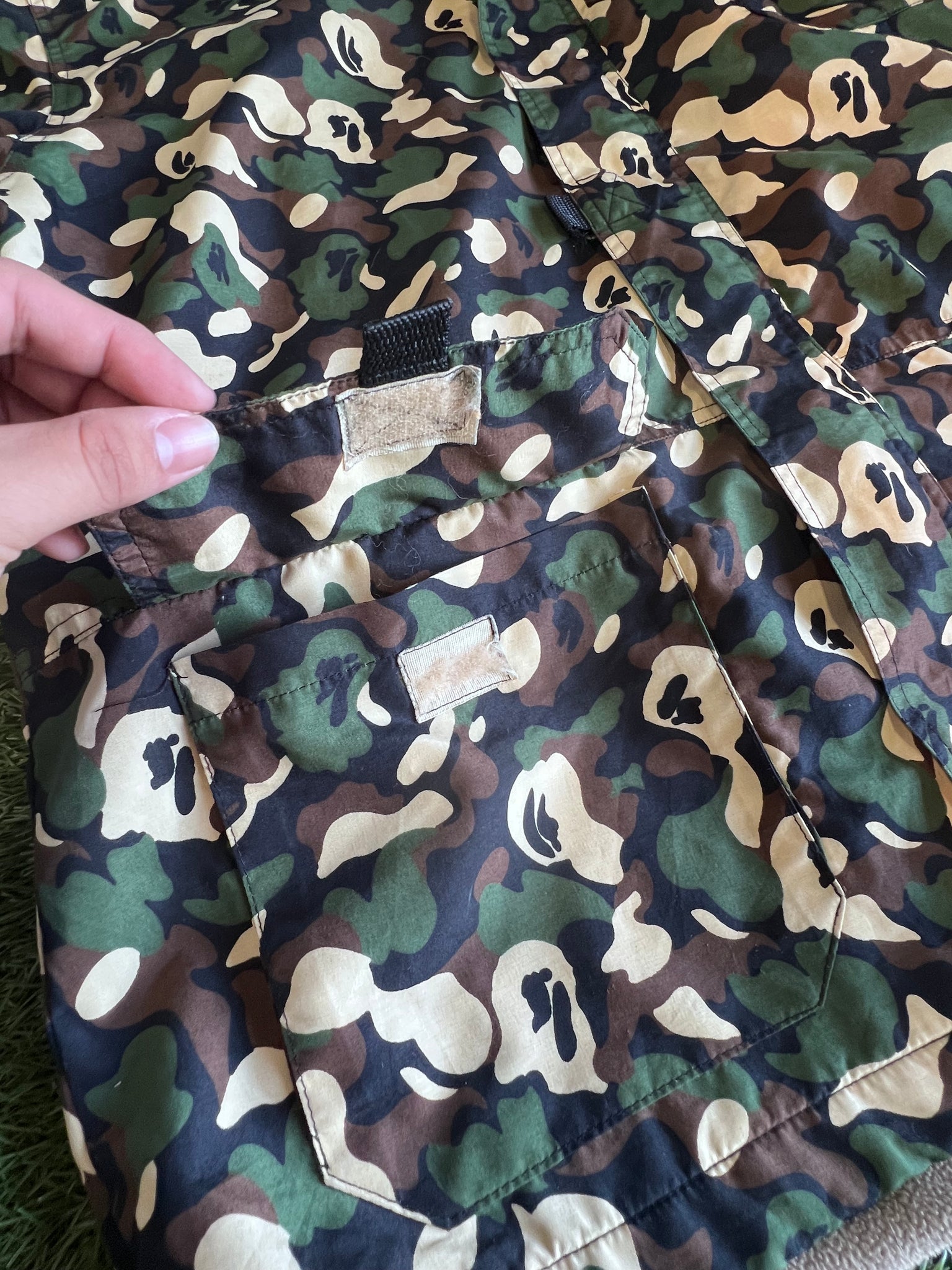- Colorway/Design: Classic green BAPE® ABC camo print with full-zip front and multiple utility pockets