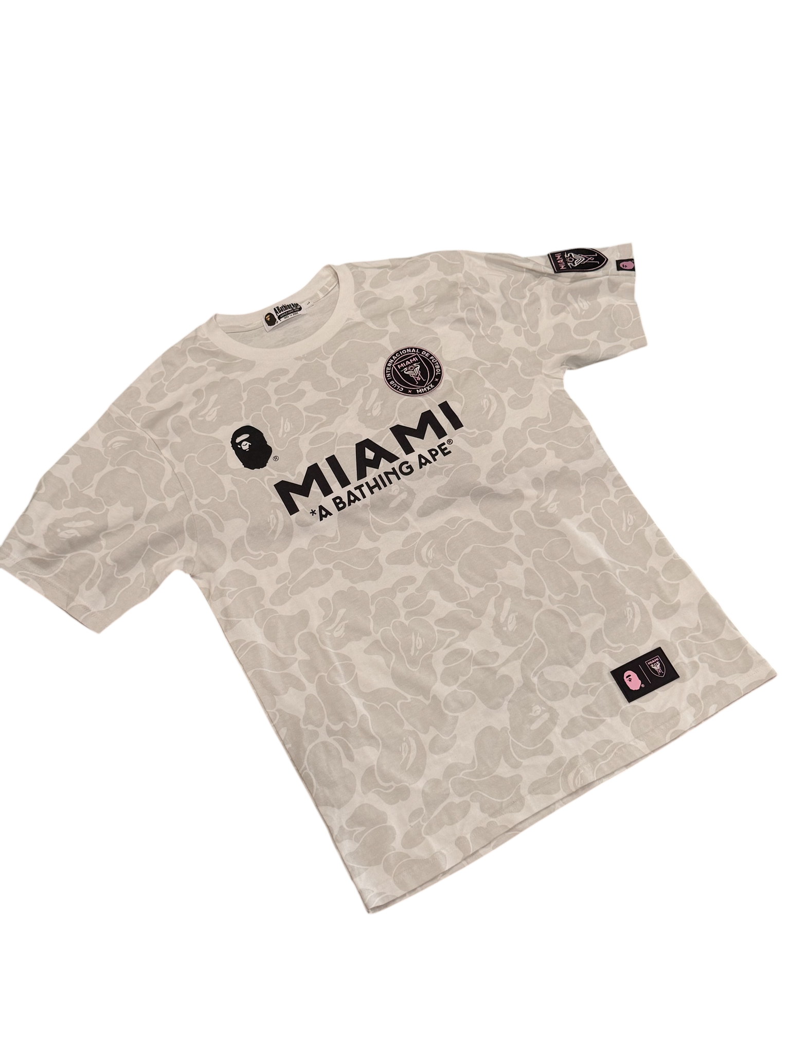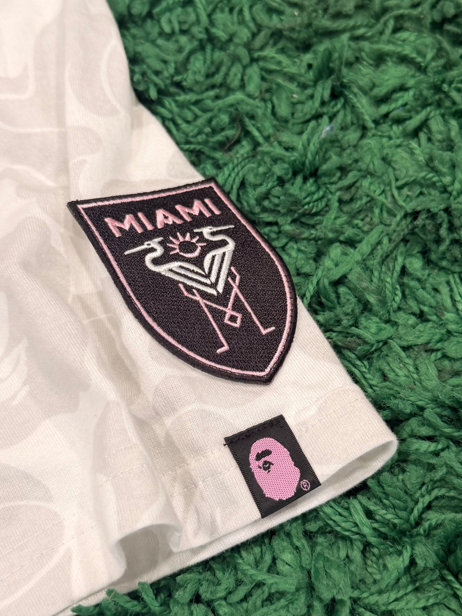 - Details: All-over tonal camo print with bold MIAMI A BATHING APE chest graphic. Features official BAPE Miami branding patches, including sleeve and hem tags. Clean neutral colorway that’s easy to style and harder to find compared to standard camo releases.