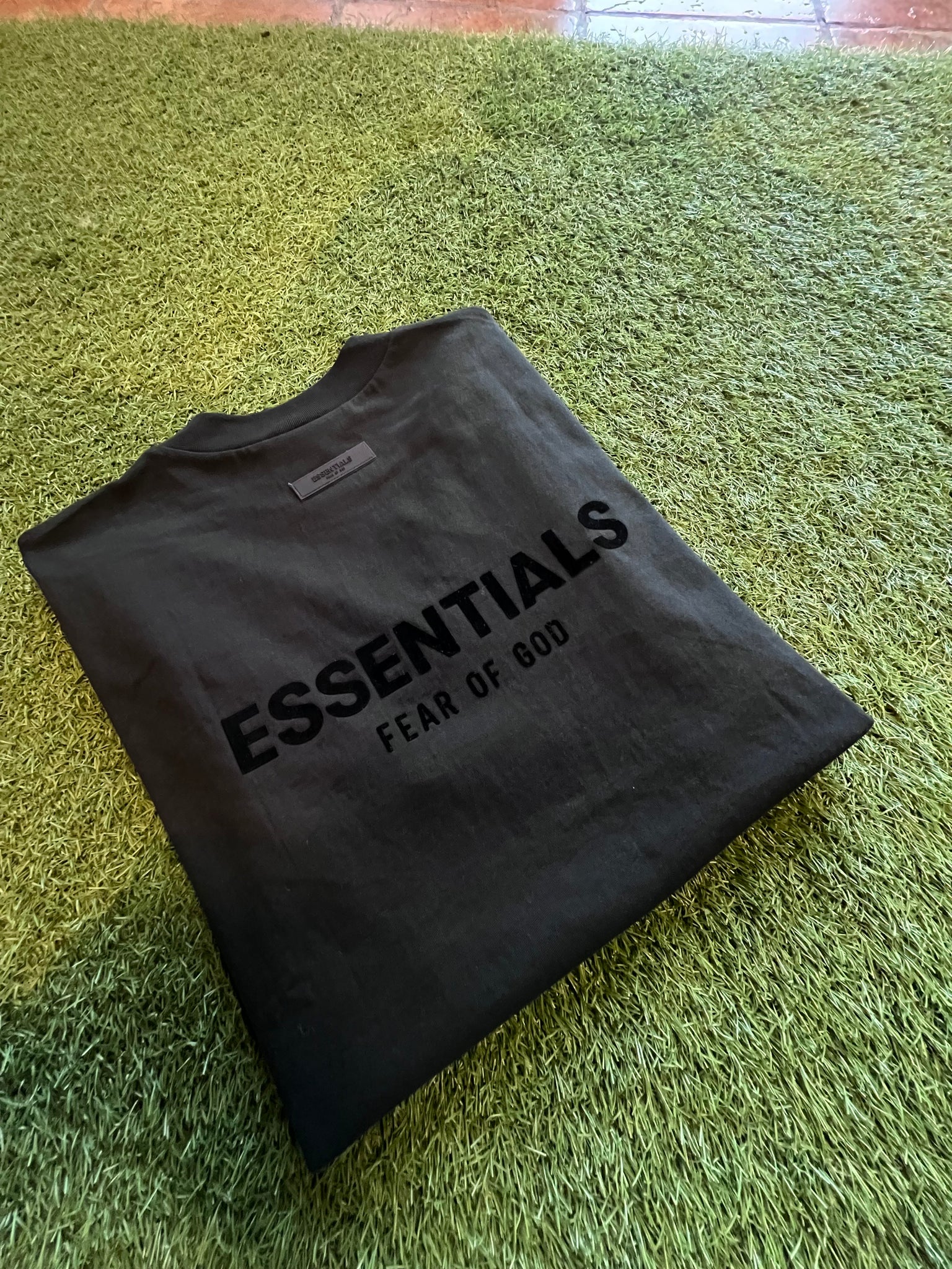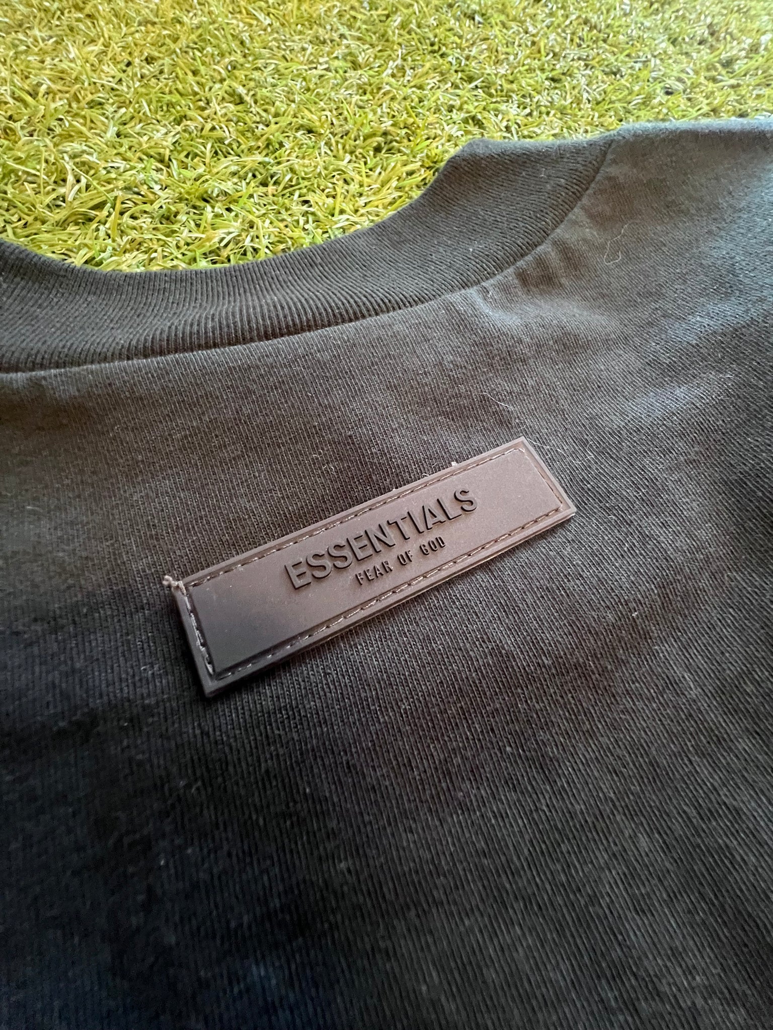 - Front: Small “ESSENTIALS Fear of God” chest print