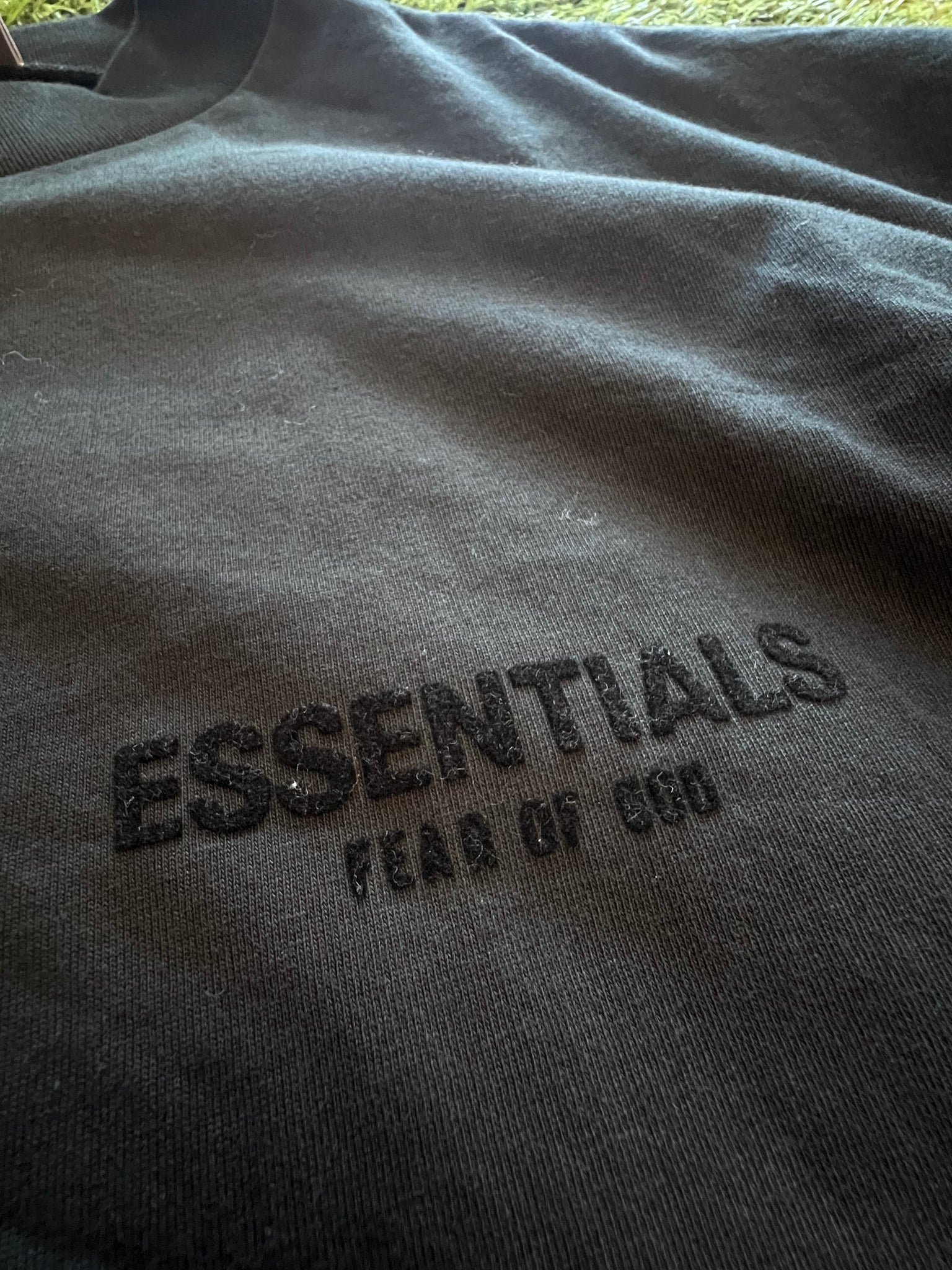 - Back: Oversized “ESSENTIALS Fear of God” logo print