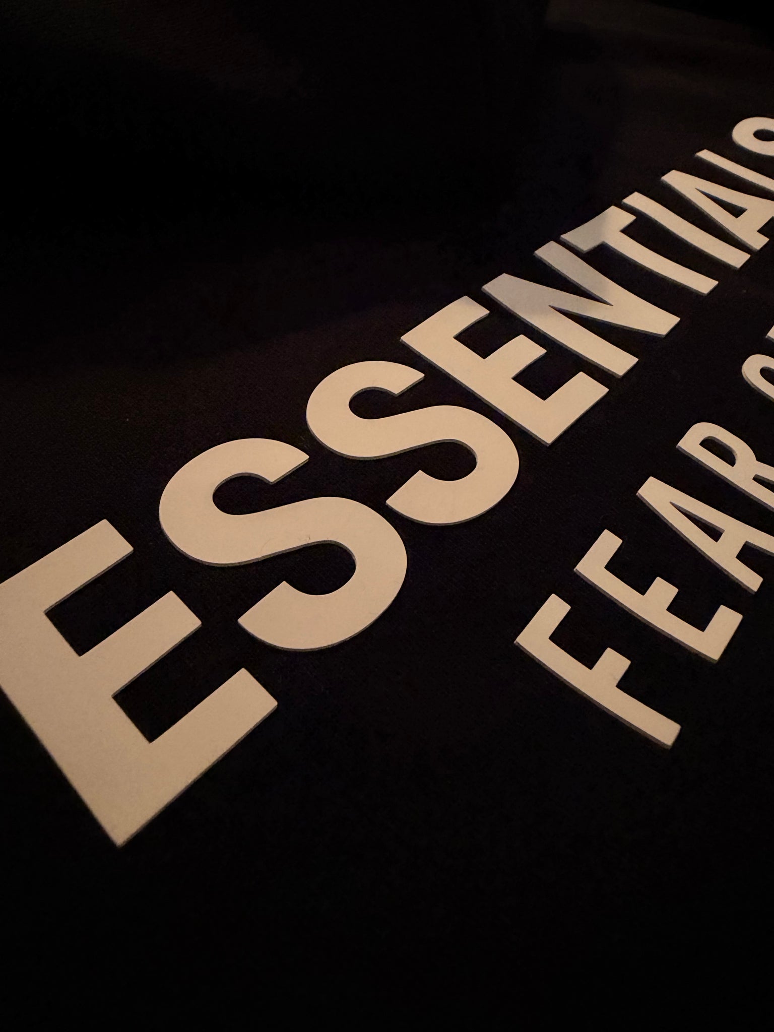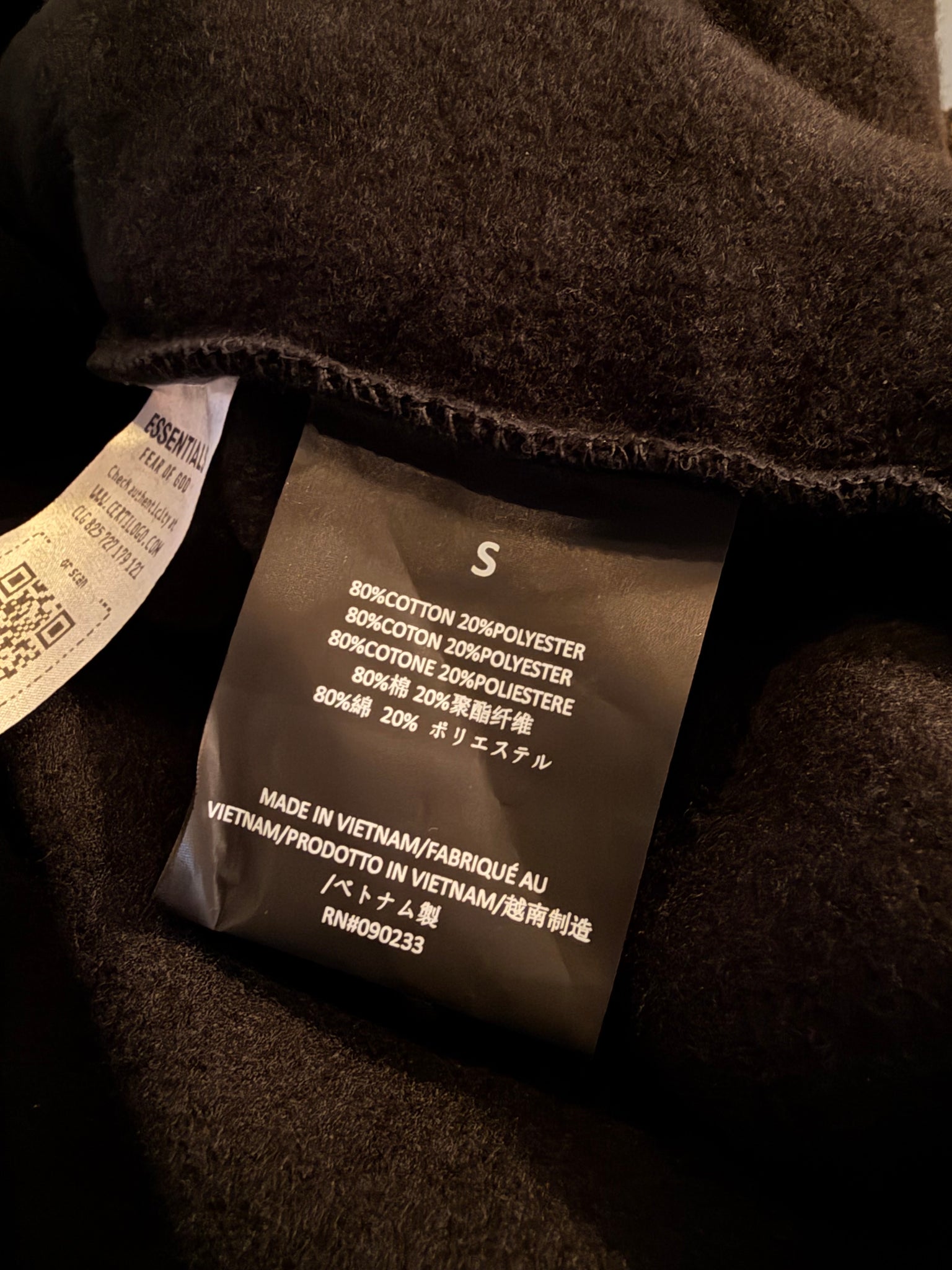 - Details: Classic Essentials fleece hoodie with front “ESSENTIALS FEAR OF GOD” print; boxy cropped fit with dropped shoulders