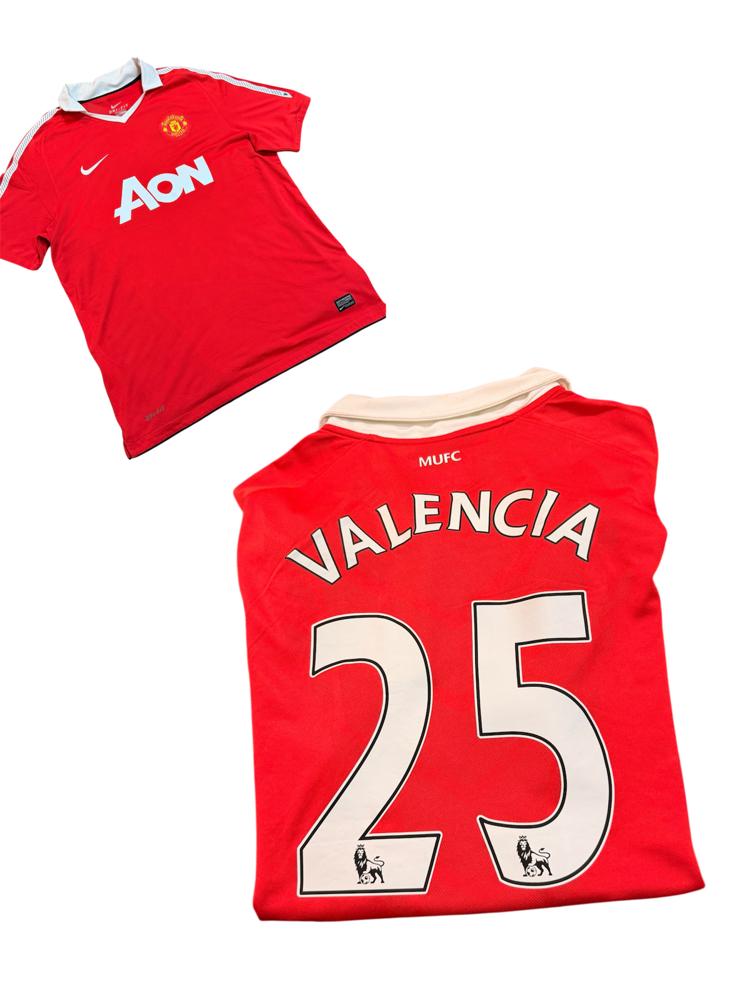 - Detail: Features official Premier League Valencia #25 name/number set on the classic AON-sponsored United home kit