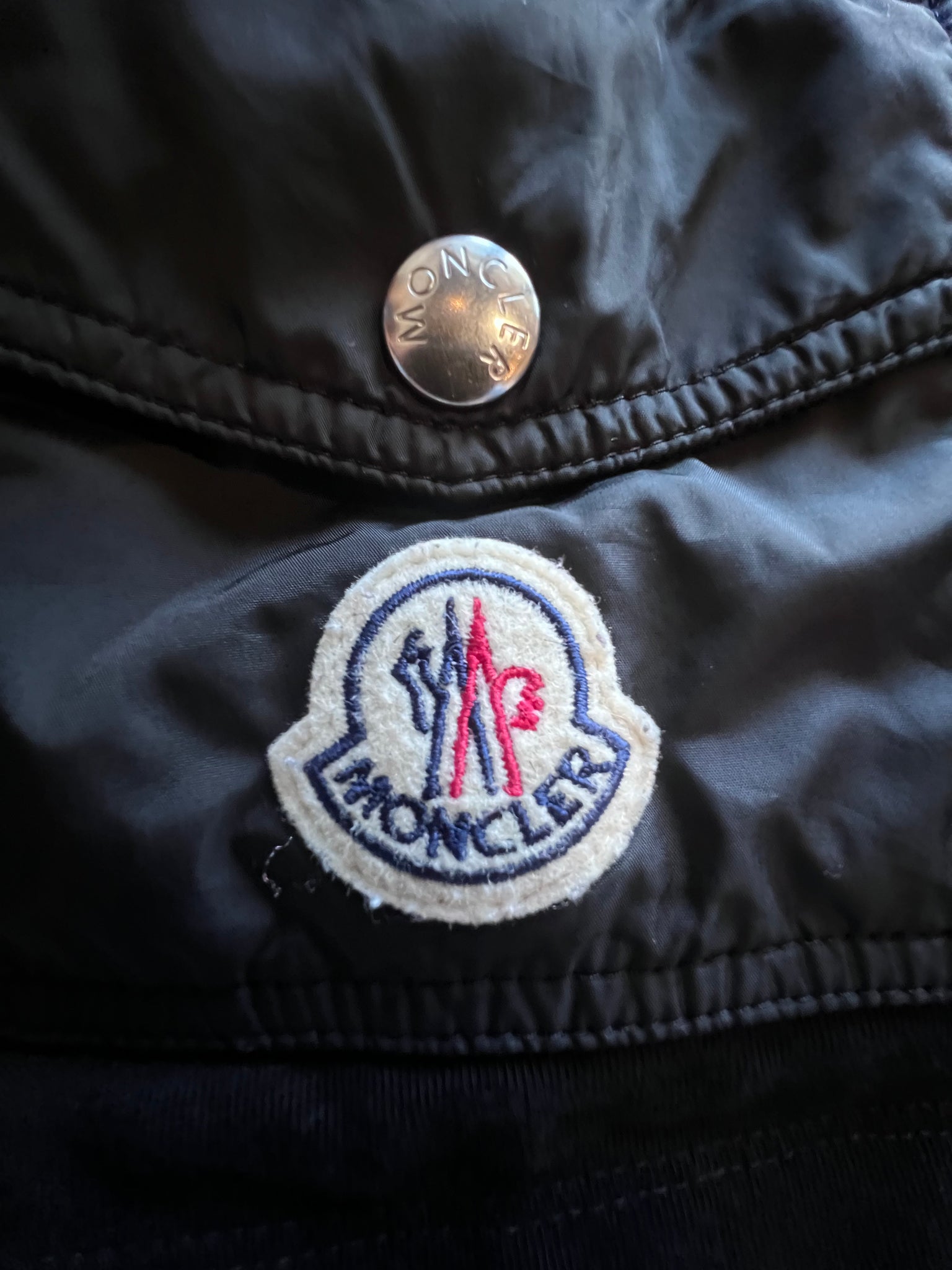 - Nylon utility pocket on sleeve with embroidered Moncler patch and snap closure
