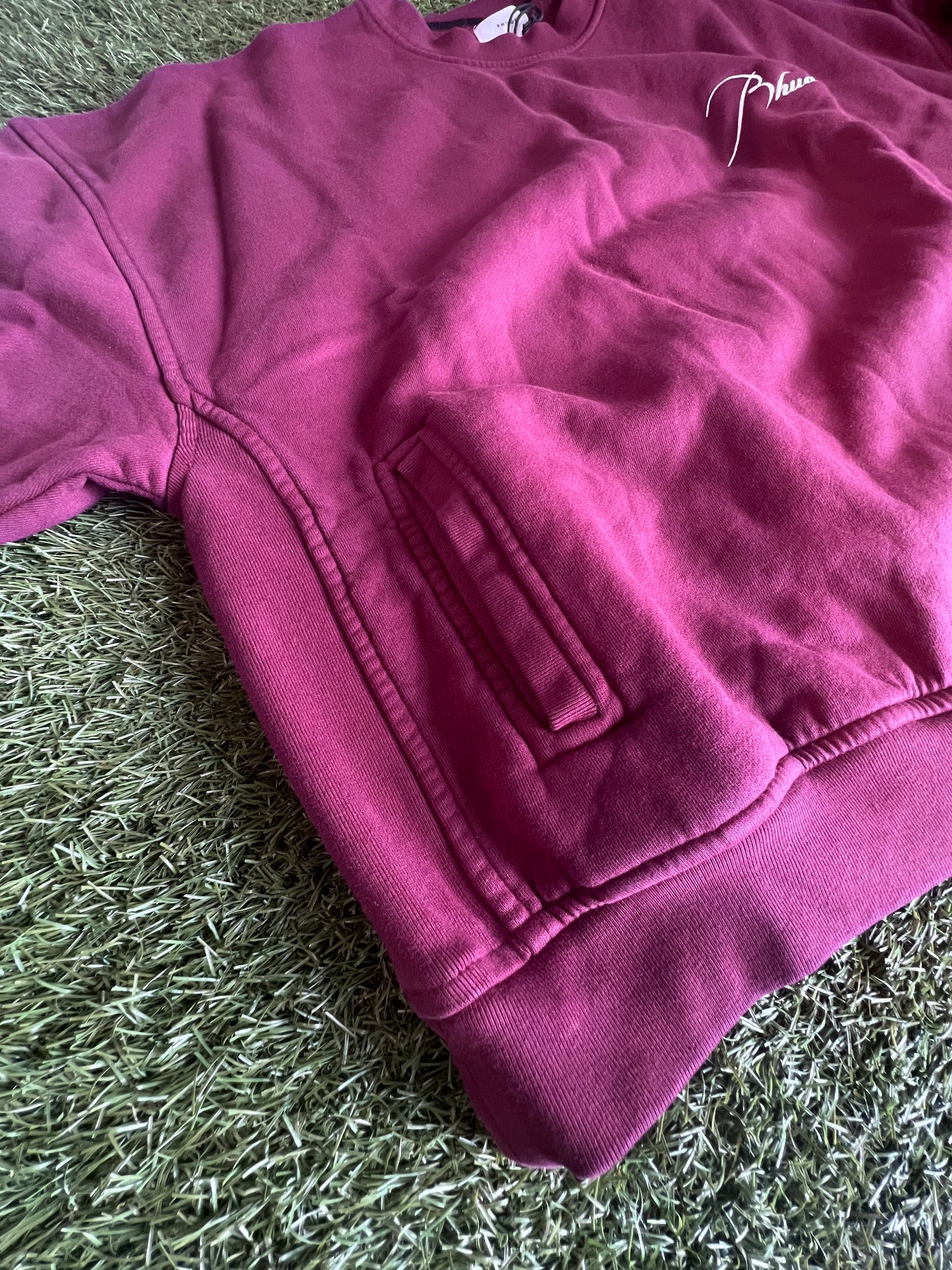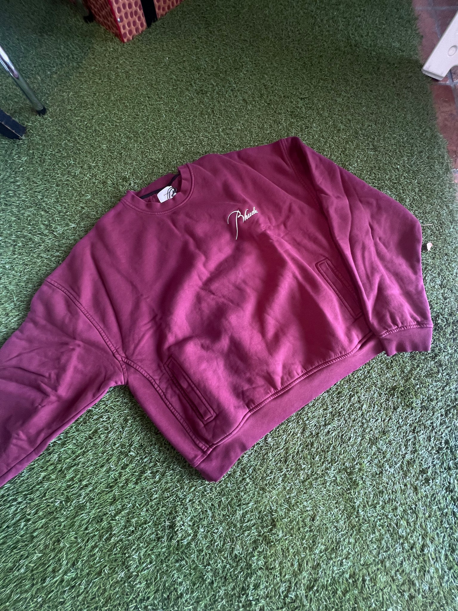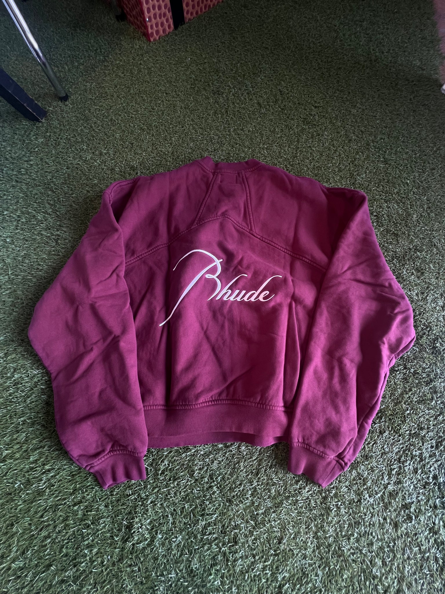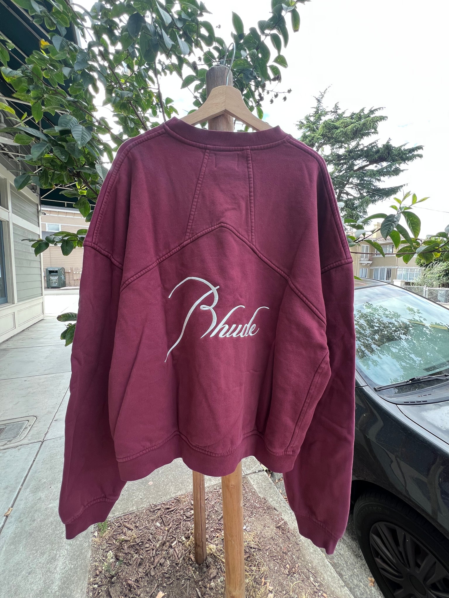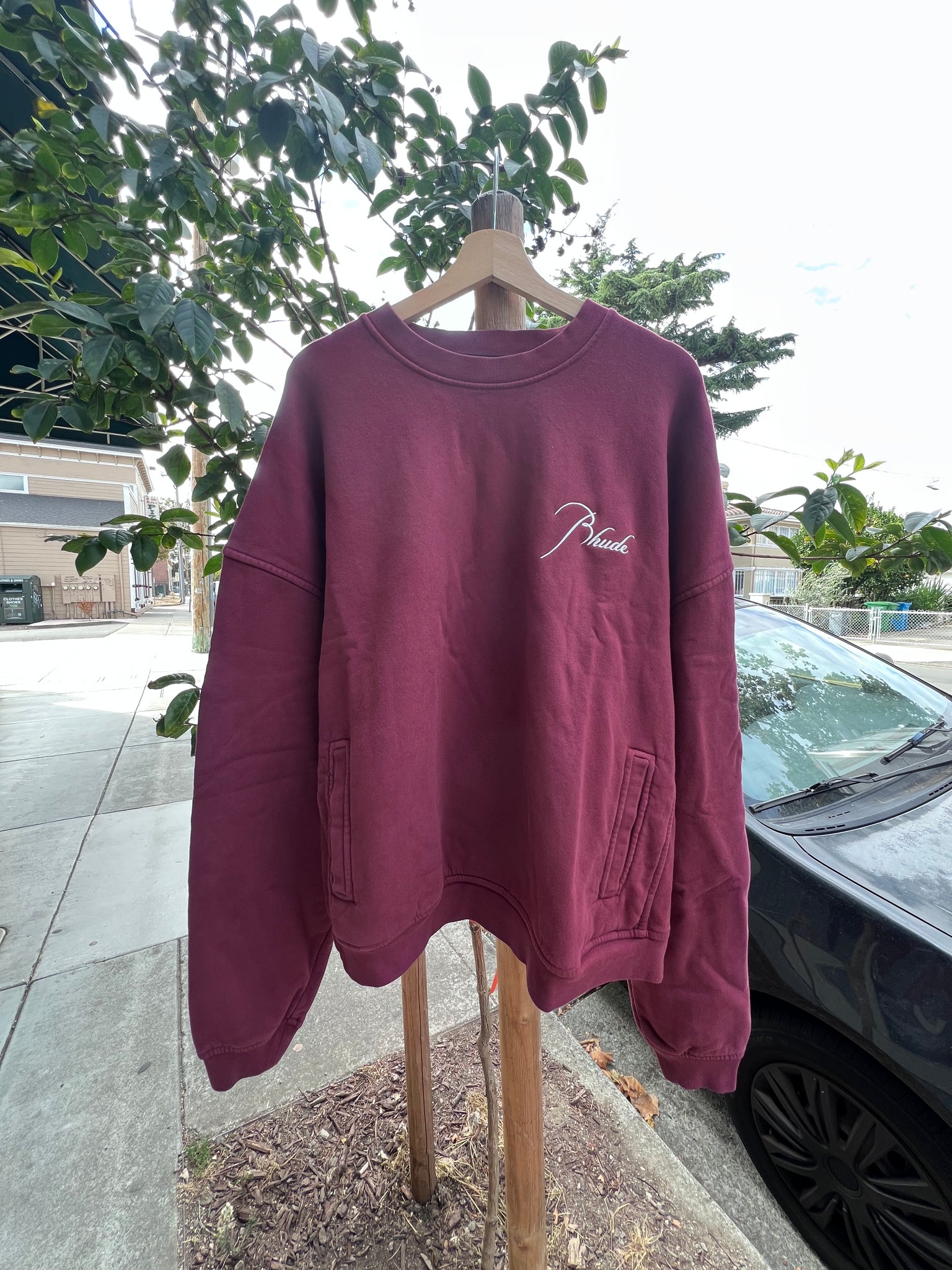 - Colorway/Design: Burgundy with white Rhude script logo on chest and large back print