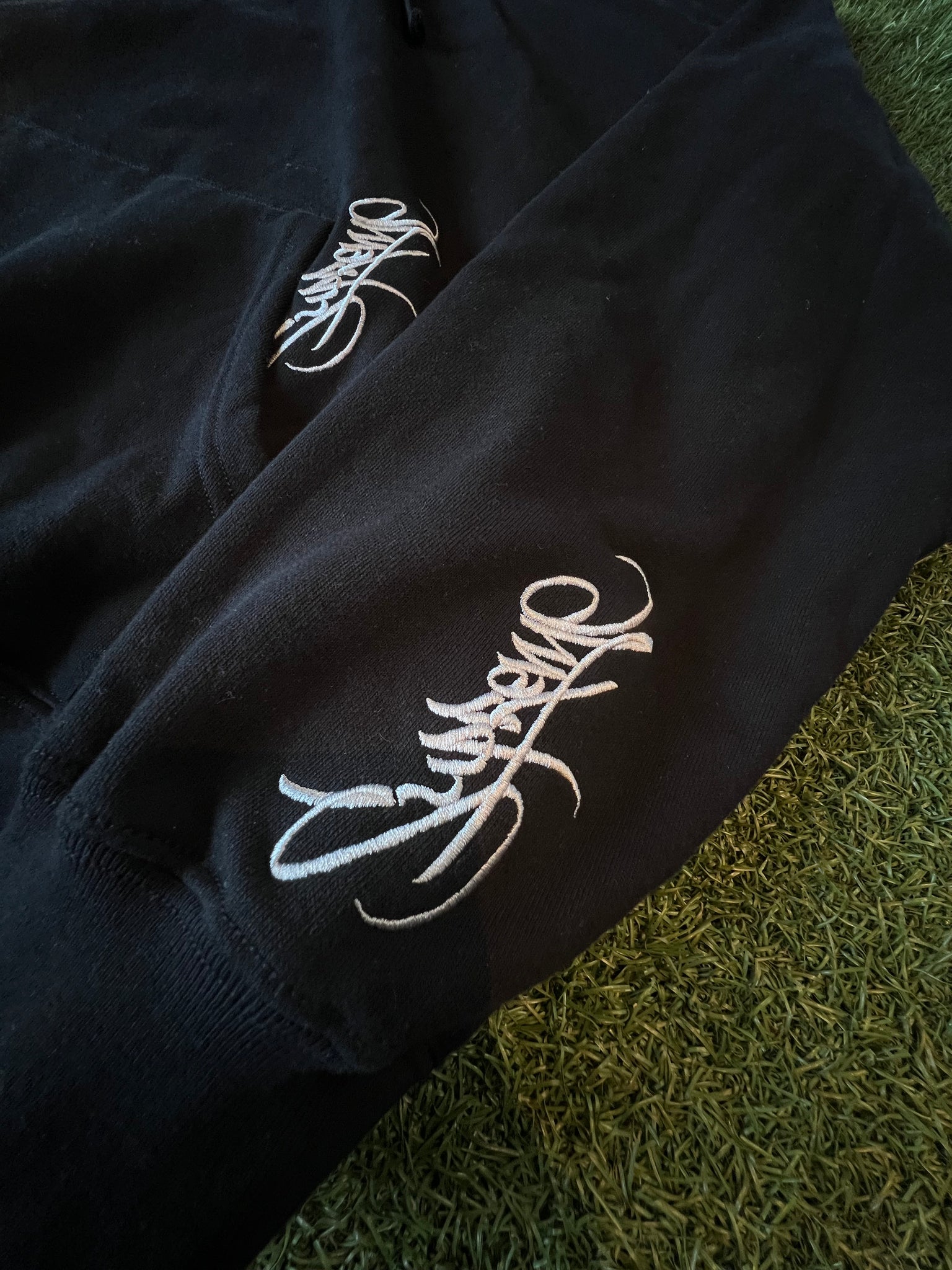White embroidered “Supreme” script logos on front, back, sleeves, and hood