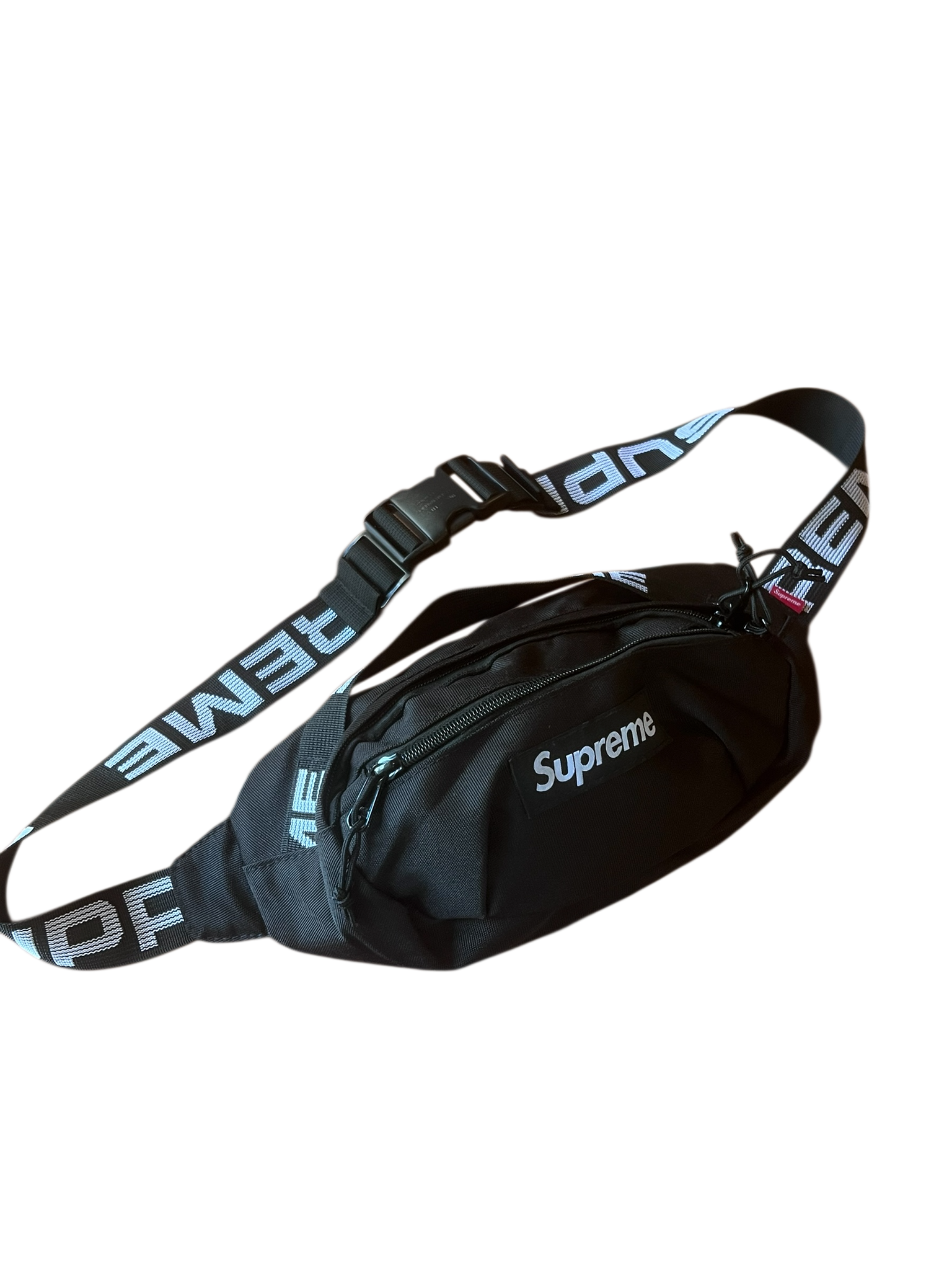 - Colorway/Design: Black with white Supreme logo and branded strap