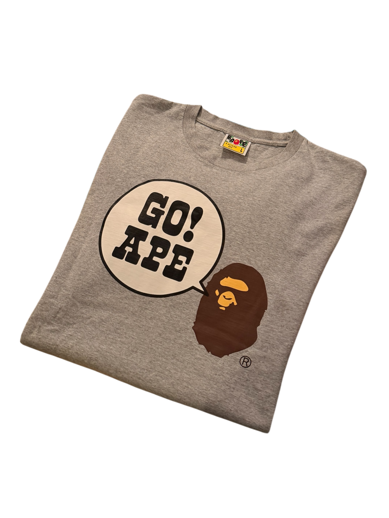 - Detail: Classic “GO! APE” graphic with the iconic Bape head, a staple vintage design